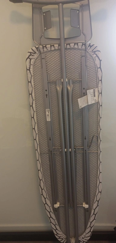 Grey metal ironing board. Honeycomb pattern cover. Purchased 1 year ago in good condition 20$ message if interested