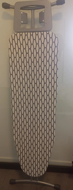 Grey metal ironing board. Honeycomb pattern cover. Purchased 1 year ago in good condition 20$ message if interested