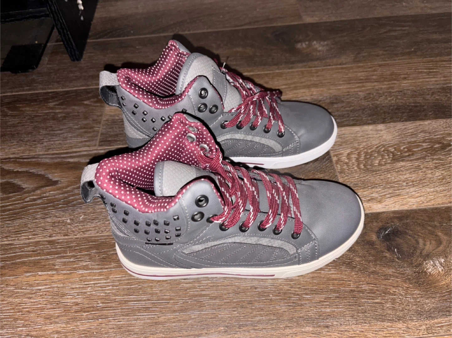 Vans Kids Grey & Maroon High-Top Sneakers Size 6