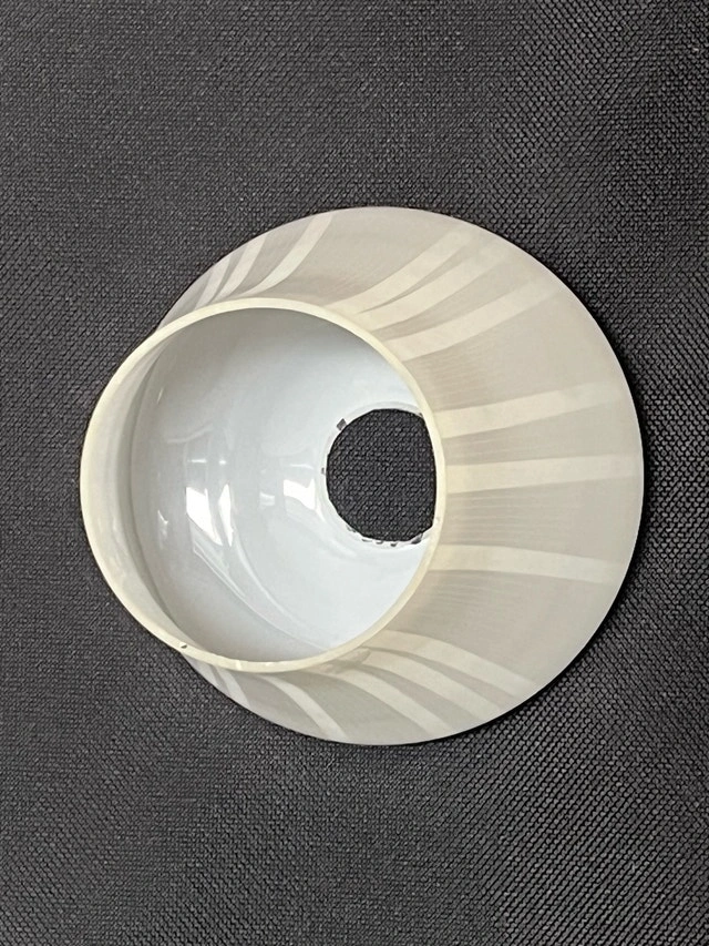 Glass light fixture with brass coloured mounting hardware.