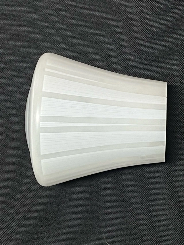 Glass light fixture with brass coloured mounting hardware.