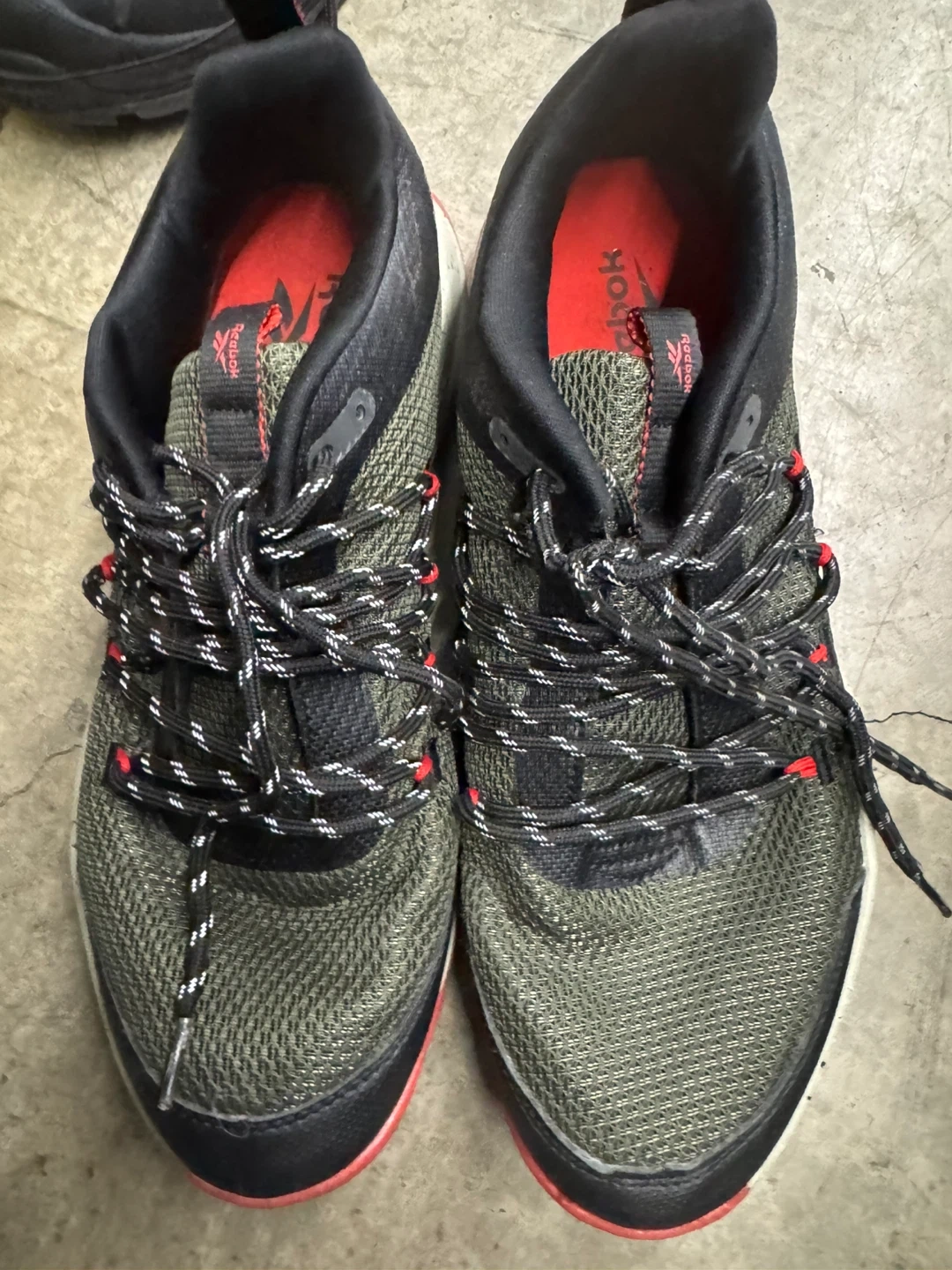 Selling a pair of Reebok trail running shoes in size 9. They are in good condition and ready for your next adventure! The shoes feature a durable design perfect for hitting the trails.