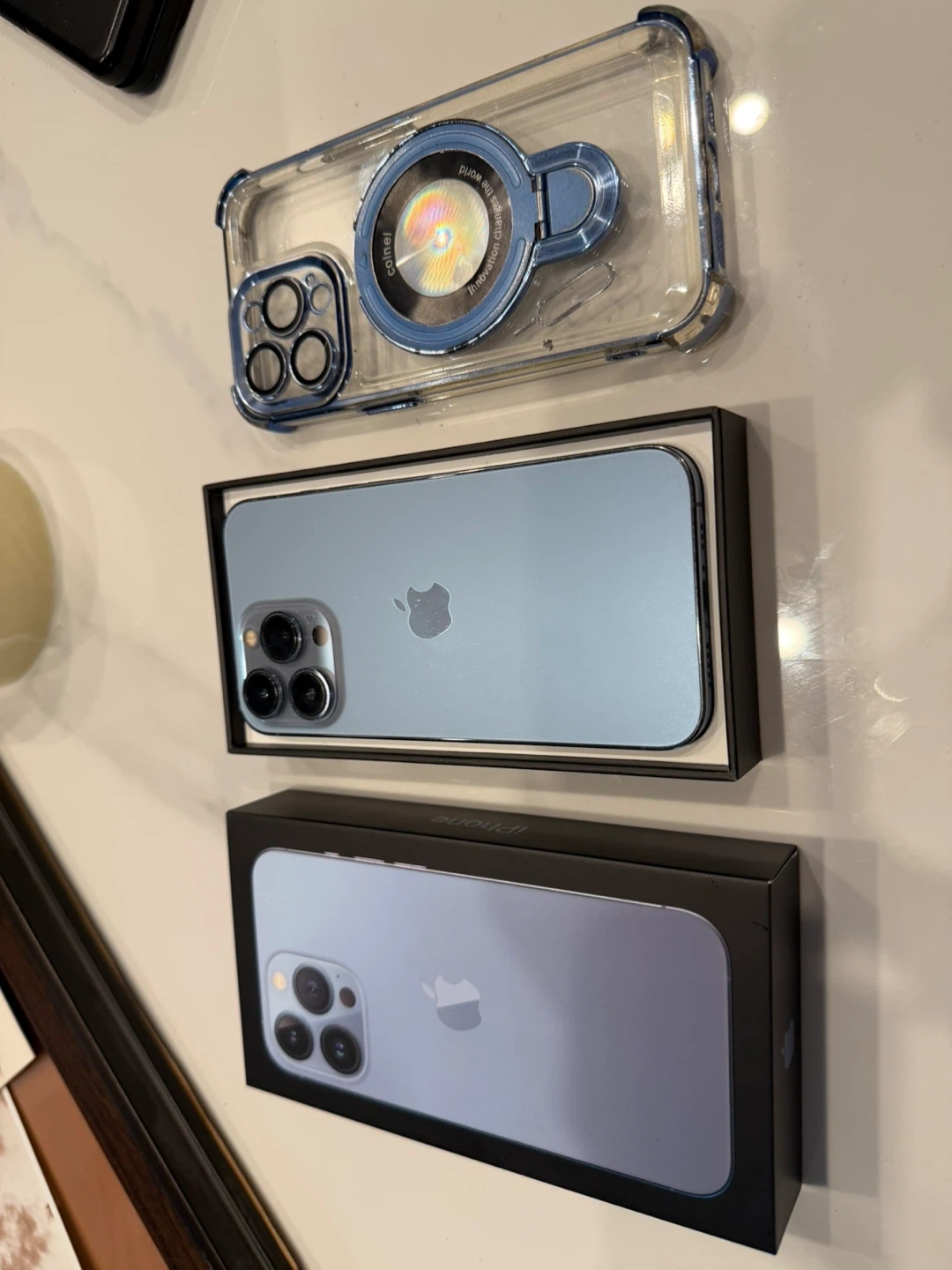 Selling my iPhone 13 Pro Max! It's in great condition and comes with the original box. Also included is a clear blue phone case to keep it protected. Feel free to ask any questions!