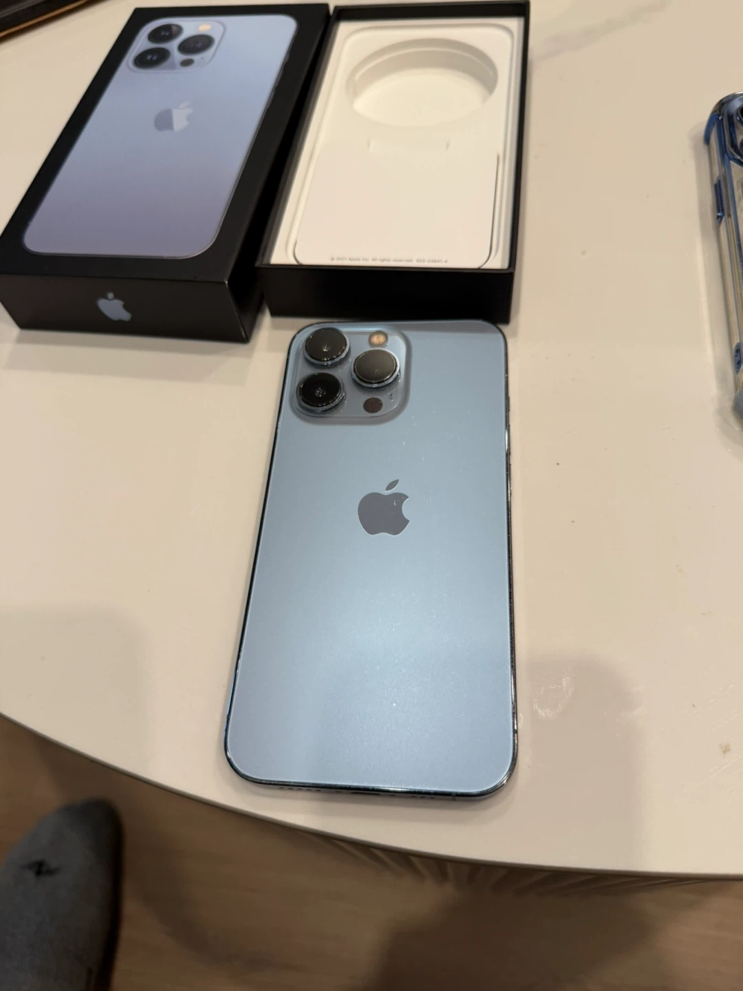Selling my iPhone 13 Pro Max! It's in great condition and comes with the original box. Also included is a clear blue phone case to keep it protected. Feel free to ask any questions!