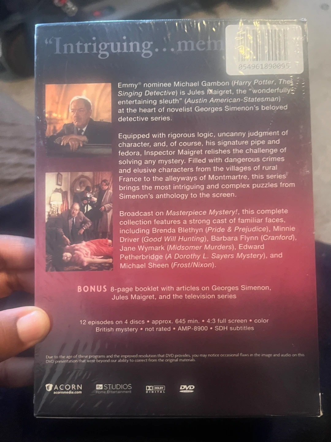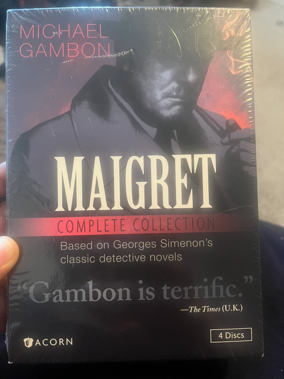 Selling a Maigret Complete Collection DVD set featuring Michael Gambon. This collection is based on Georges Simenon's classic detective novels and includes 12 episodes on 4 discs. It also has a bonus 8-page booklet with articles on Georges Simenon and the television series. A great addition for any British mystery fan!
