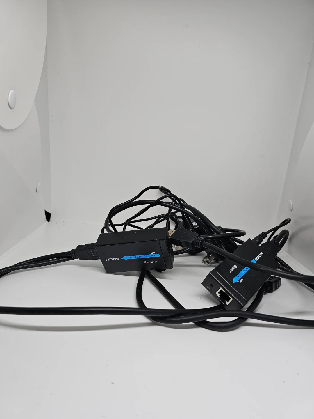 Selling a used HDMI extender set. Includes both the sender and receiver units, along with the necessary power adapters. Great for extending HDMI signals over longer distances!