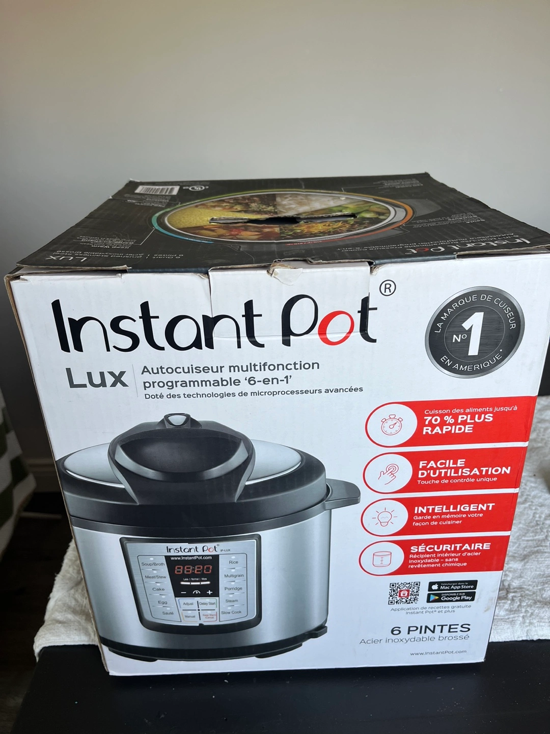 Buy & SellInstant Pot Lux 6-in-1 Multi-Function CookerInstant Pot Lux 6-in-1 Multi-Function Cooker$90Includes inner pot, steaming rack, two serving spoons and lid.ConditionNewBrandInstapotWHERE TO MEETCheck LocationView MapSELLERDhruviUniversity140 reviews0 chats·1 favorites·16 viewsSEND CHAT TO SELLERHi Dhruvi! I’m interested in your listing.Hi Dhruvi! I’m interested in your listing.Get the Karrot app to chatSign In to chat