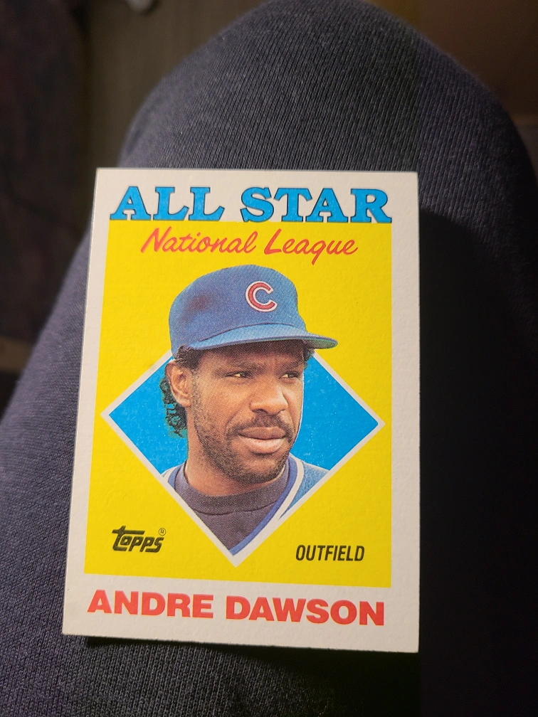 Andre Dawson 1988 Topps baseball card. National League All-Star outfield. Shows stats for runs batted in.