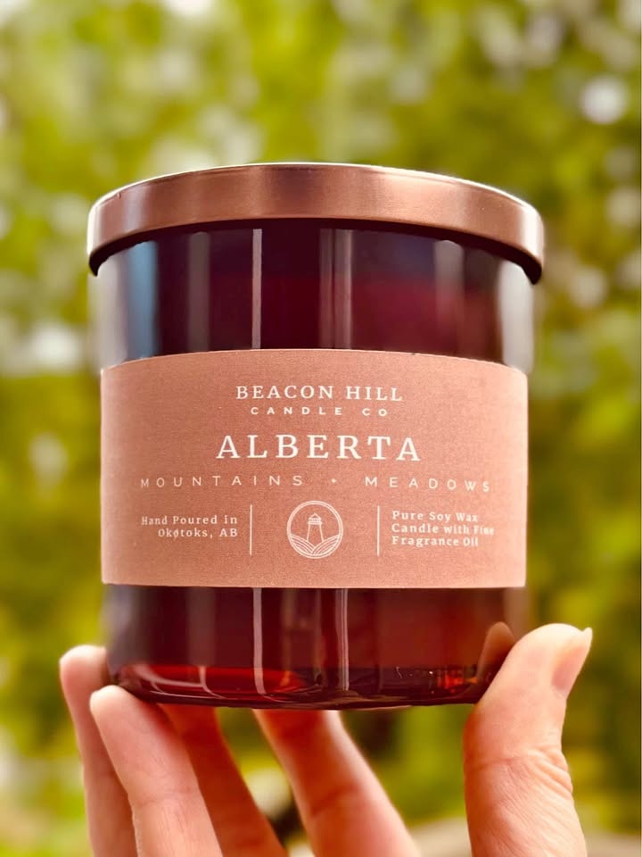 As seen in the G7 Kananaskis Welcome Box! Yes — our candles were handpicked to welcome the world's leaders at the G7 Summit! Elevate your space with luxury fragrance — handcrafted right here in Alberta! We’re Beacon Hill Candle Company, and our 12 oz soy candles are: Hand-poured in small batches, Infused with premium, long-lasting scents, Made-to-order with care and quality. Best-selling scents available now: Alberta (a customer favourite!), Mahogany + Teakwood, Bridle + Saddle, Coffee House, Cinnamon Hearts, Banana Bread. Prefer a different scent? All fragrances on our website can be made in this classic 12 oz jar! Local pickup available. Support local. Light up your space with Beacon Hill.