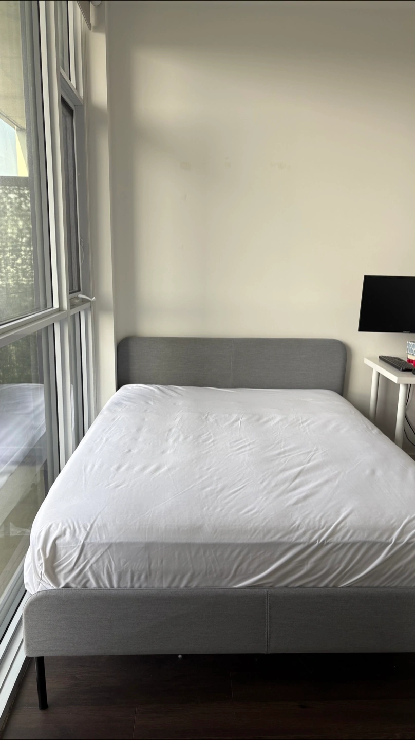 Selling a sleek and modern IKEA SLATTUM bed frame (queen size).