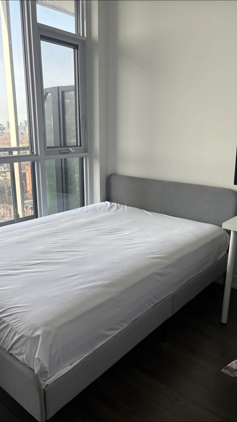 Selling a sleek and modern IKEA SLATTUM bed frame (queen size).