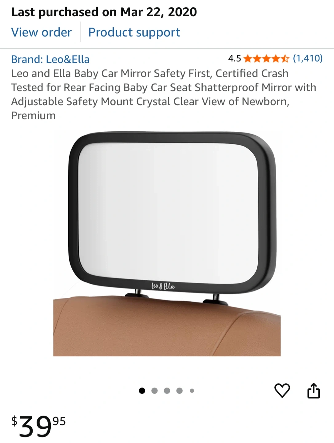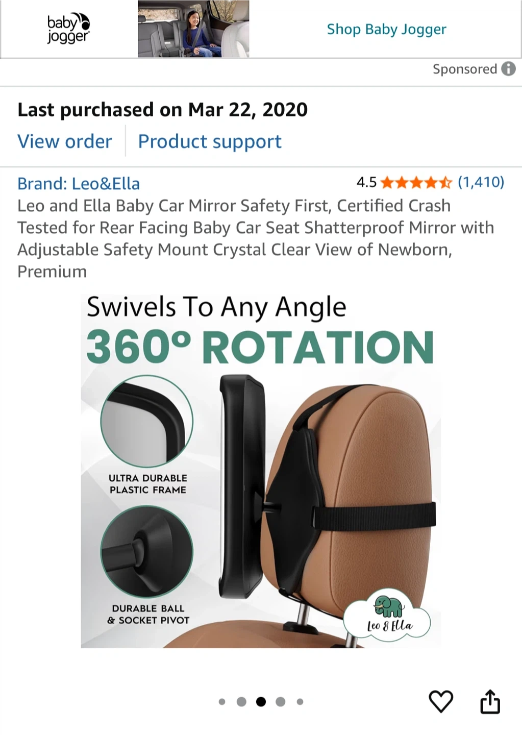 Leo and Ella Baby Car Mirror Safety First, Certified Crash Tested for Rear Facing Baby Car Seat Shatterproof Mirror with Adjustable Safety Mount Crystal Clear View of Newborn, Premium
