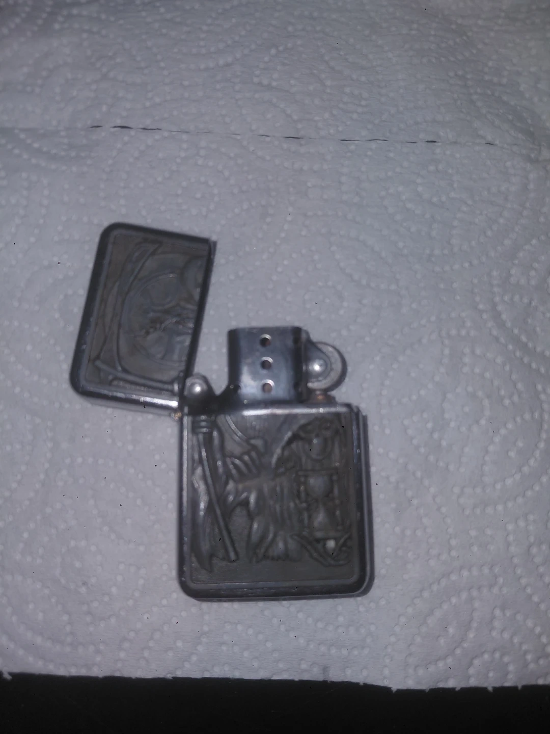 Buy & SellVintage Engraved LighterVintage Engraved Lighter$17This is a vintage lighter with an engraved design. It features a grim reaper and hourglass motif. Metal construction. Solo para recoger WHERE TO MEETElder PharmacyView MapSELLERverified689310Elder Av802 reviews0 chats·0 favorites·9 viewsSEND CHAT TO SELLERHi 689310! I’m interested in your listing.Hi 689310! I’m interested in your listing.Get the Karrot app to chatSign In to chat