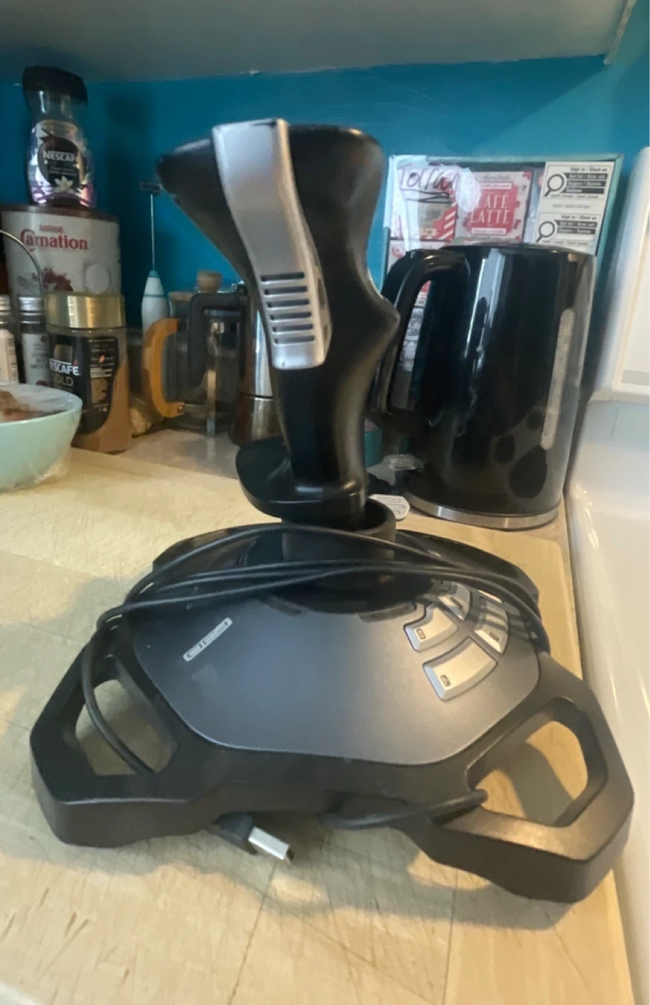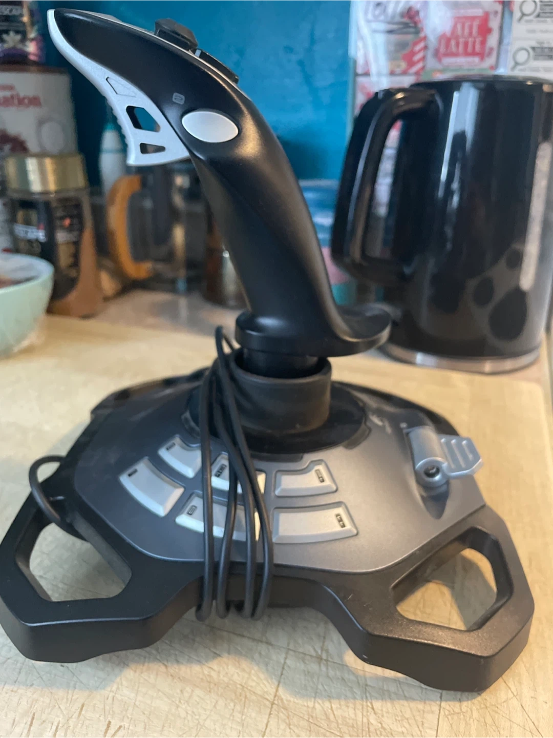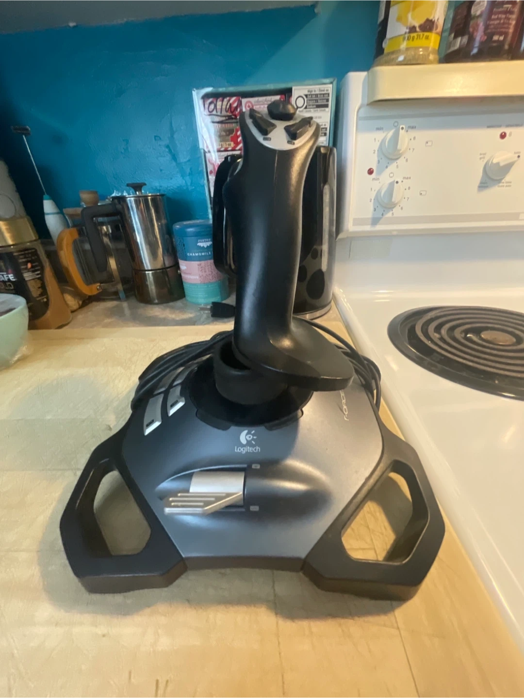 This is a Logitech Force 3D Pro joystick. It's designed for PC gaming. The joystick features 12 buttons and a throttle control.