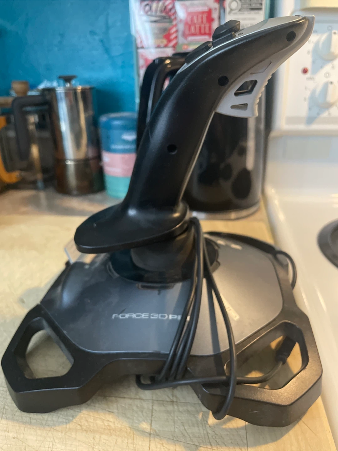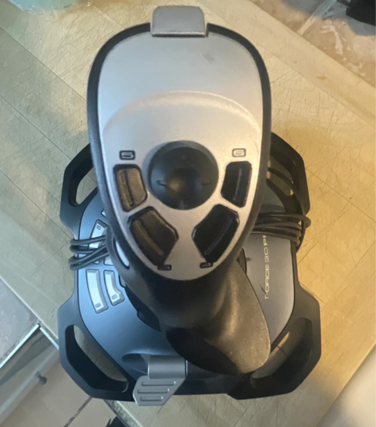 This is a Logitech Force 3D Pro joystick. It's designed for PC gaming. The joystick features 12 buttons and a throttle control.