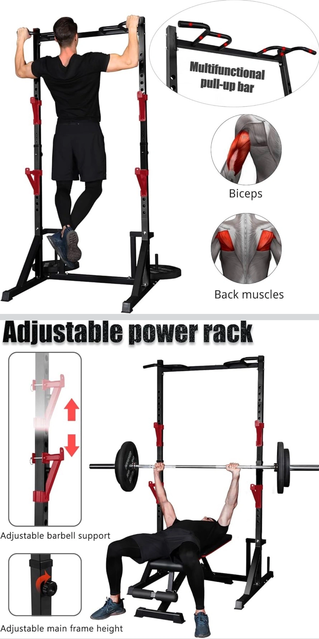 Multifunction Power Rack with Pull up Bar, Heavy Capacity Adjus