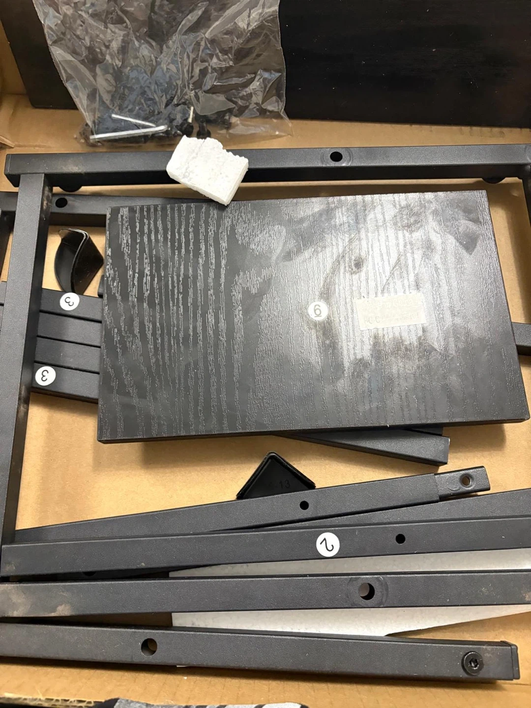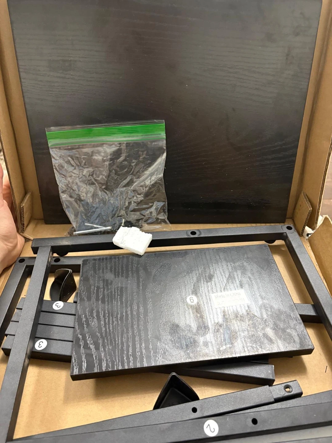 This is an end table.It has a black wood grain finish. Assembly hardware is included in a bag. The item's box indicates measurements of 43.5 X 33 X 6 CM.