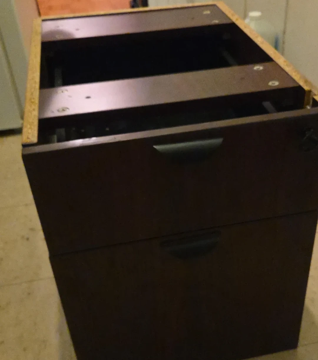 Dark Wood Filing Cabinet under the desk
