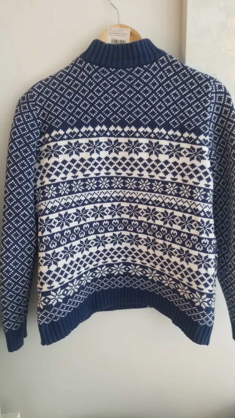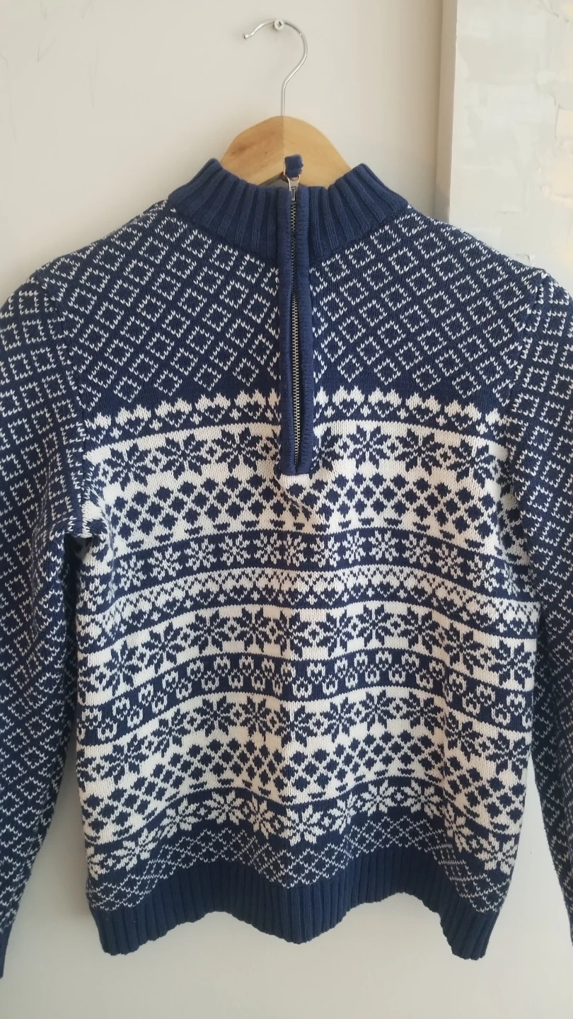 Blue and White snowflake pattern with half zip.
