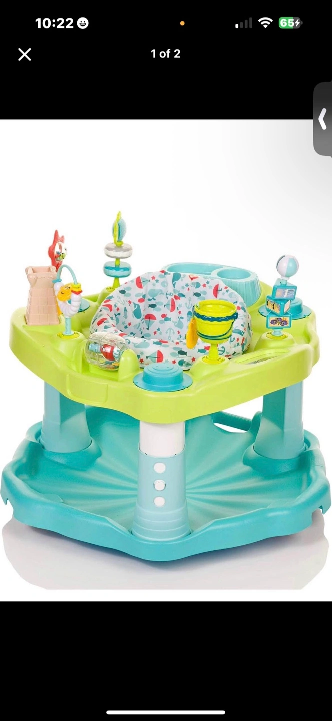 Selling a baby activity centre in great condition! It has a variety of toys and activities to keep your little one entertained. The seat has a cute pattern with whales, anchors, and sailboats. It's perfect for babies who are learning to sit up and explore