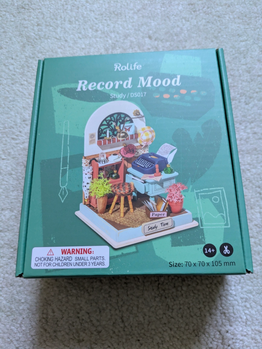 Selling a brand new Rolife Record Mood miniature house kit! It's a fun DIY project to build a cute little study scene. The box includes all the materials and instructions you'll need to assemble it. The finished size is 70 x 70 x 105 mm. Note that it contains small parts and is not suitable for children under 3 years