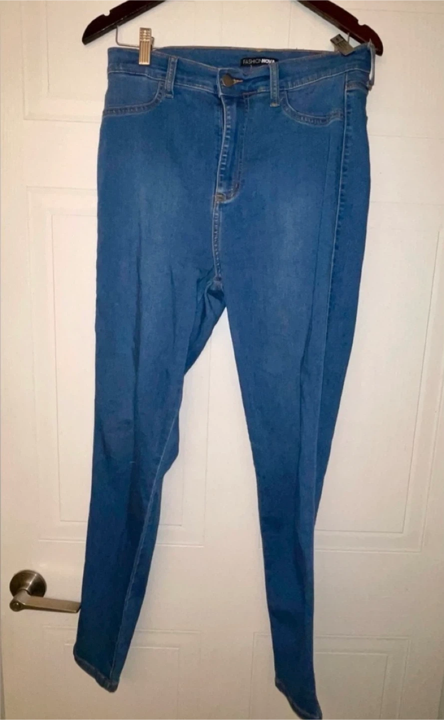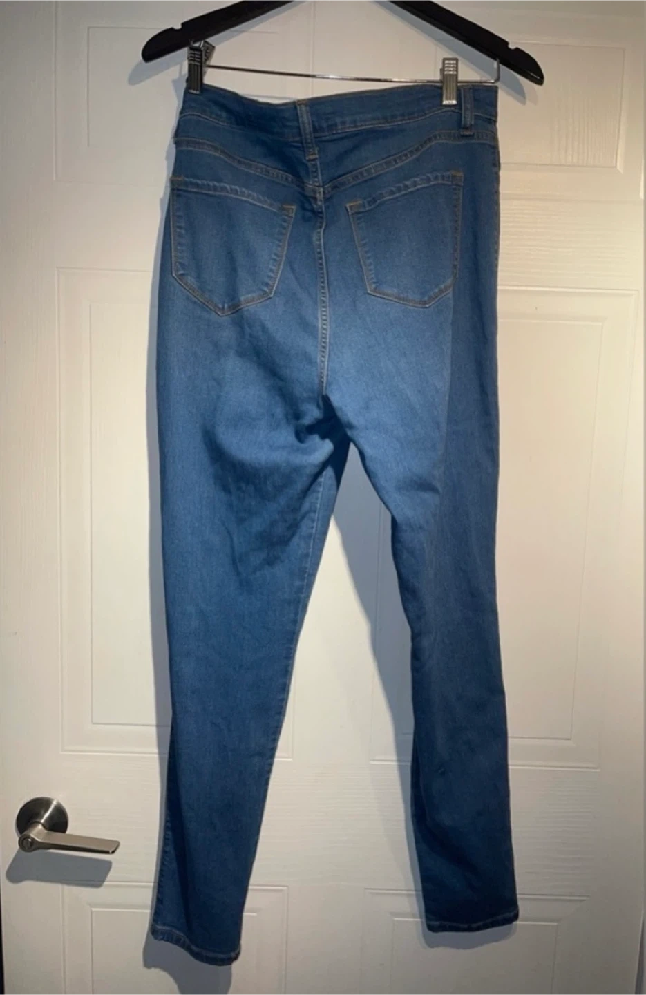 Tried on, in excellent condition. Minor scuff on back pocket as shown. Tag says size 13 regular but fits like size US 8/10. Measurements below. Comfortable, high-waisted skinny jeans with great stretch, a flattering fit, and a beautiful medium blue wash.