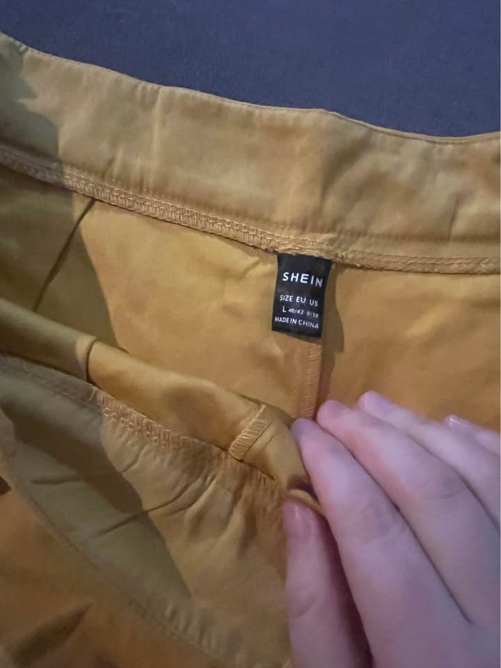 Beautiful Women's shorts high waist, faux suede shorts with a scalloped hem in yellow/mustard color. Size L, NEW, never used. Cute, comfortable, elegant. Perfect for any occasion.