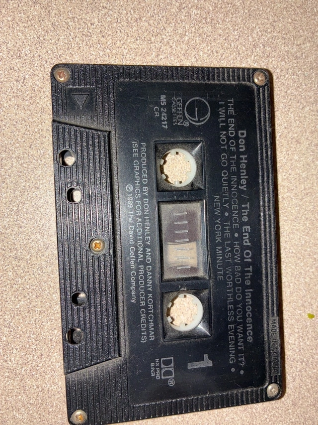 If you're looking for a nostalgic trip back to the late '80s or just want to enjoy some classic Don Henley tunes on a vintage format, this cassette is just the ticket. It has been well-loved and is ready for a new home where it can spin its tales once more! Available if ad is still up.