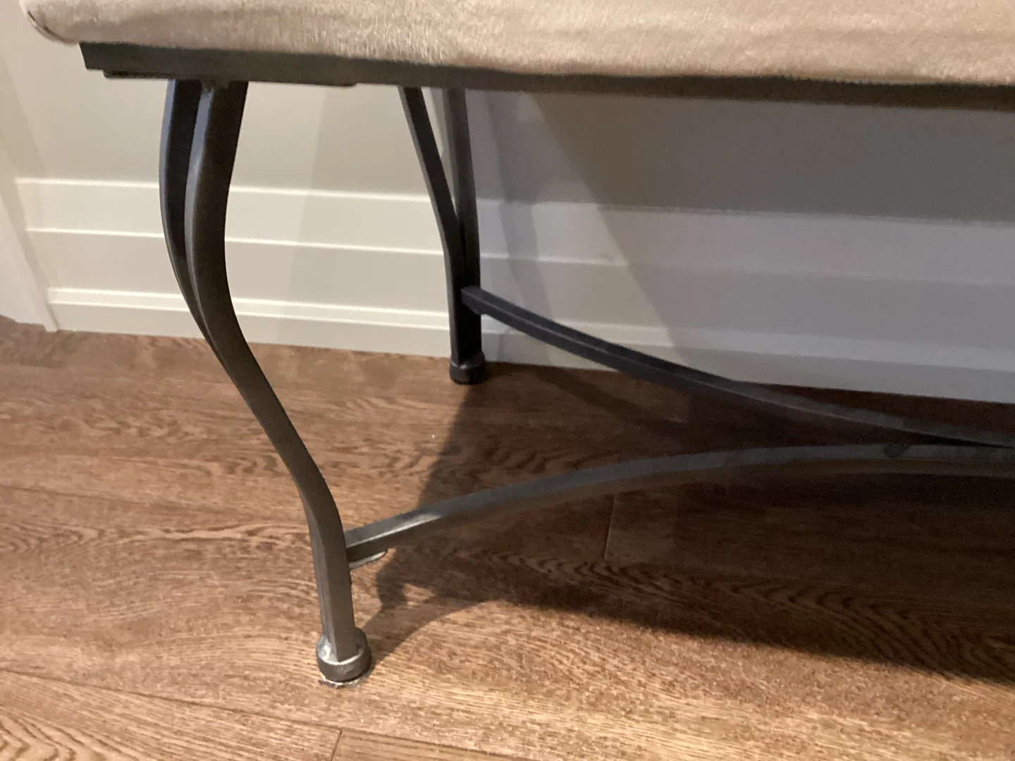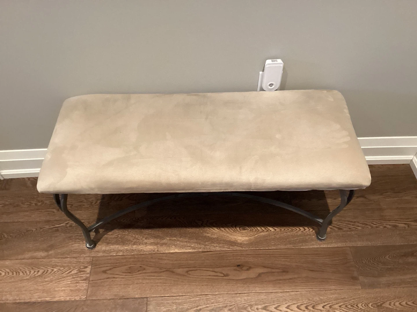 Bench for sale, microfibre seat, smoke and pet free home, minor staining which I will try to clean, lightweight easy to move,