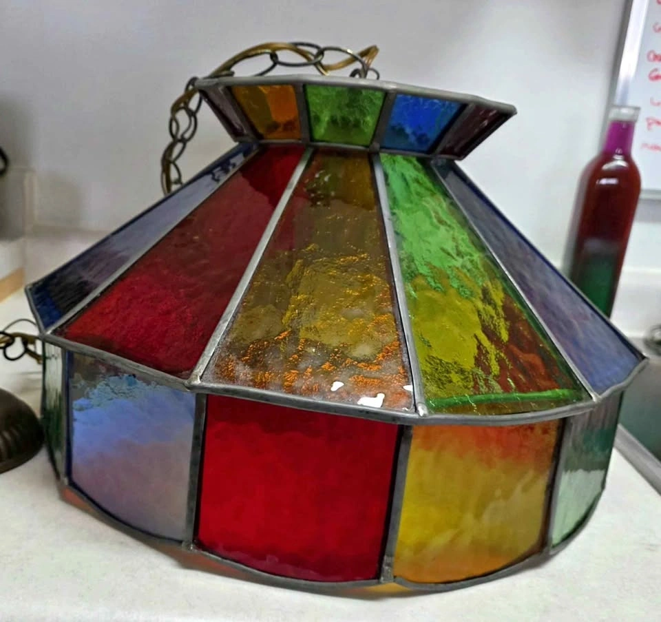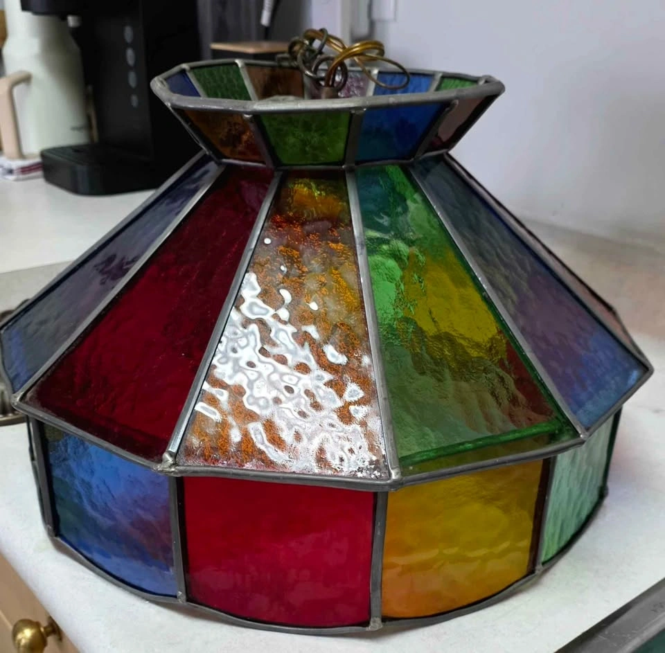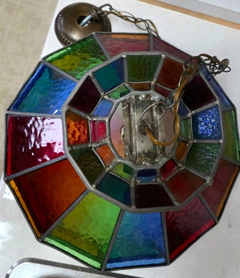 Vintage Multi-Colored Stained Glass Pendant Light Fixture