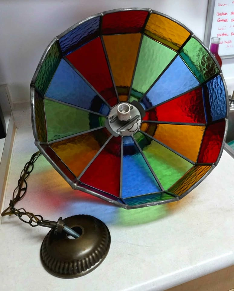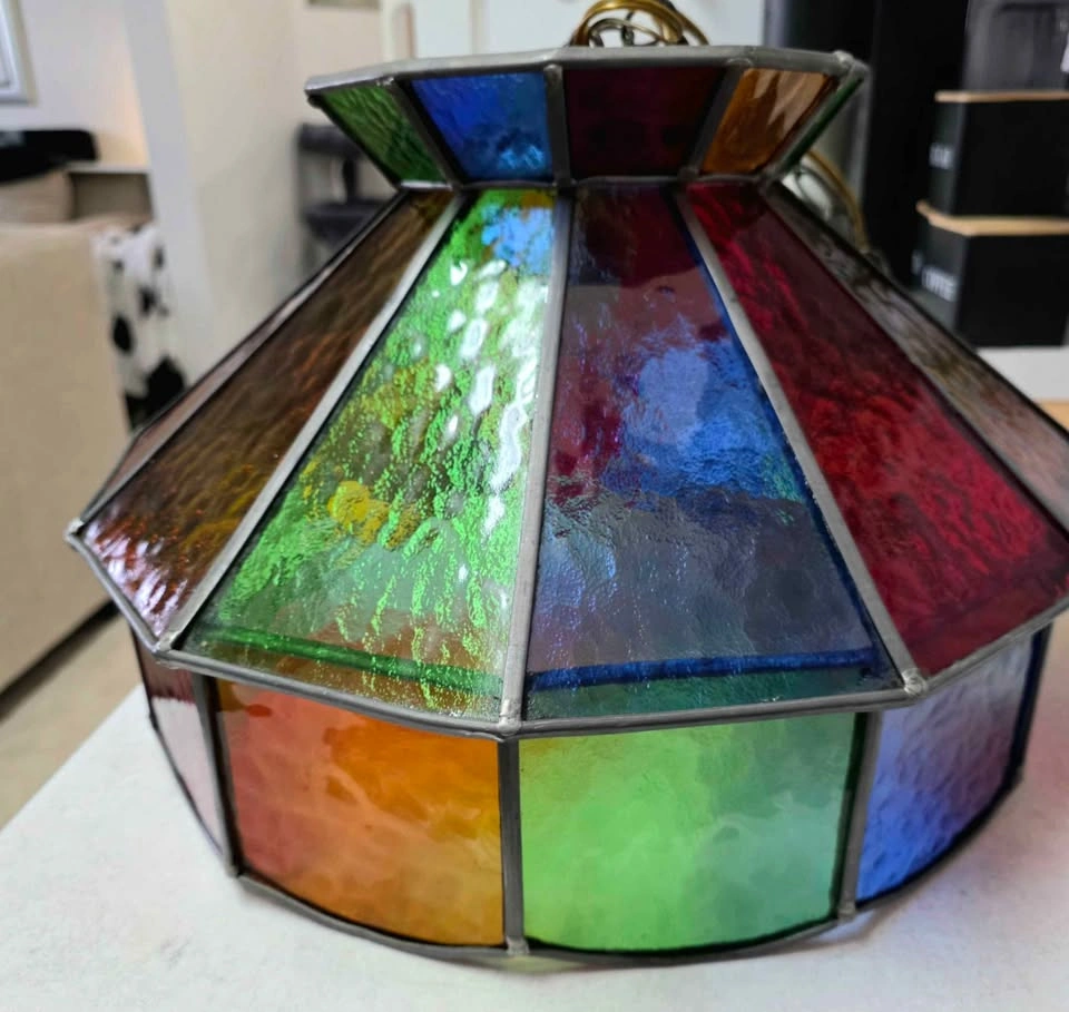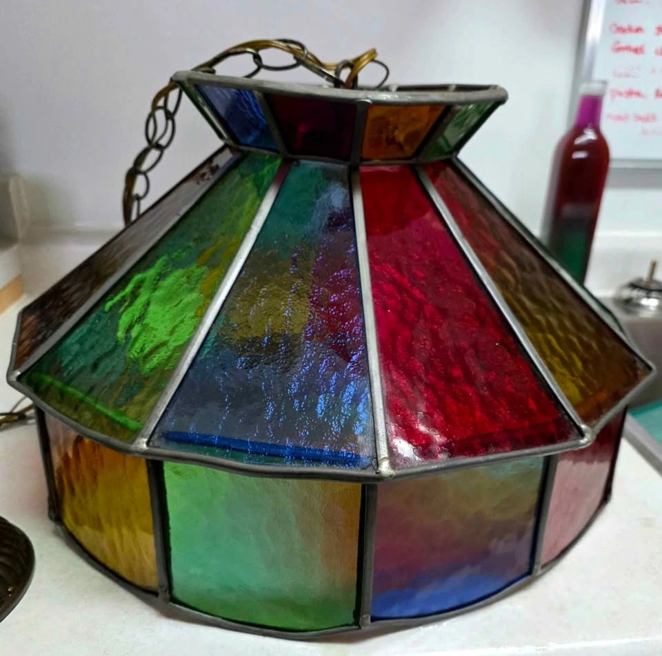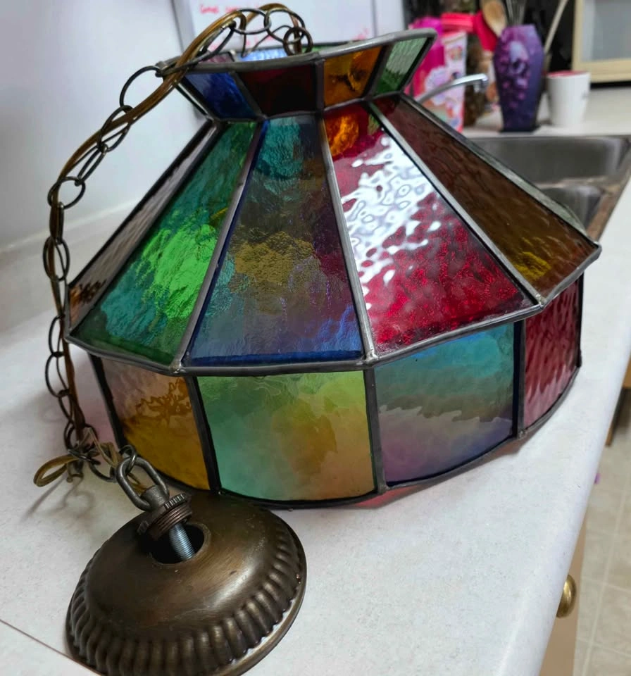 Vintage Multi-Colored Stained Glass Pendant Light Fixture