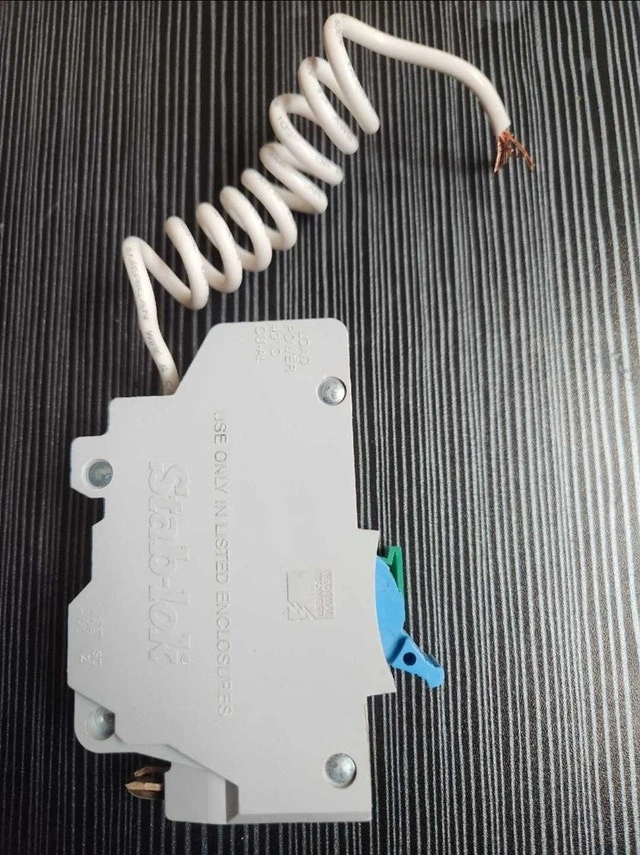 Used, single-pole Federal Pioneer Stab-lok Type NA-AFI circuit breaker with Arc Fault protection (AFI). This breaker was removed from a working panel. Key Features: Type: Stab-lok Circuit Breaker and Arc Fault Circuit Interrupter (AFI). Voltage: 120V AC. Interrupting Rating: Max. RMS Sym. 10,000 Amp. Function: Designed to protect against dangerous electrical arcing (sparks) to prevent fires. Condition: Used, with white coiled neutral pigtail wire present. IMPORTANT NOTE: Due to the nature of used electrical safety components, this item is sold AS IS. It is the buyer's responsibility to verify compatibility with their existing panel and local code requirements (CEC). Installation MUST be performed and inspected by a certified, licensed electrician. Cash accepted.
