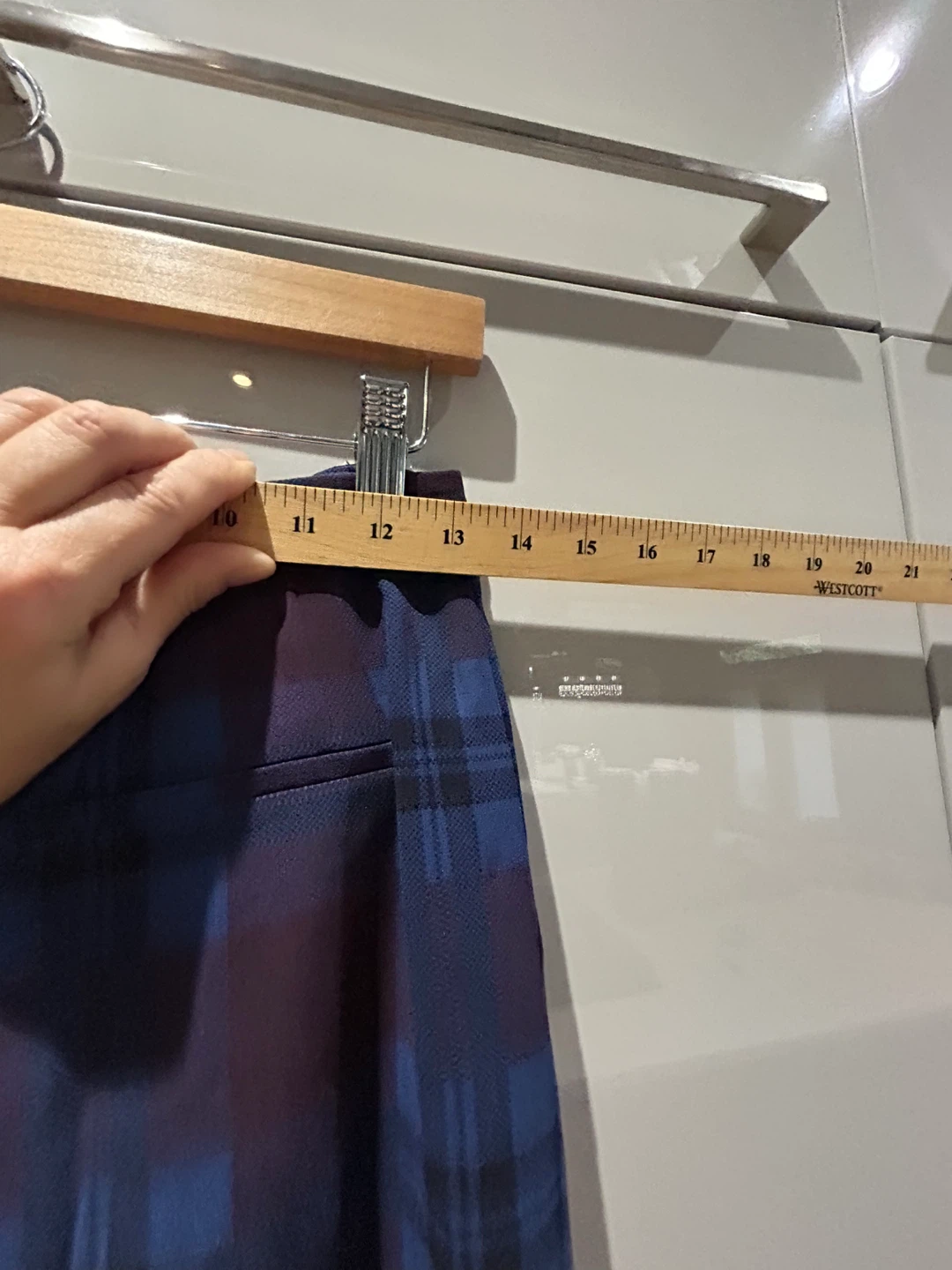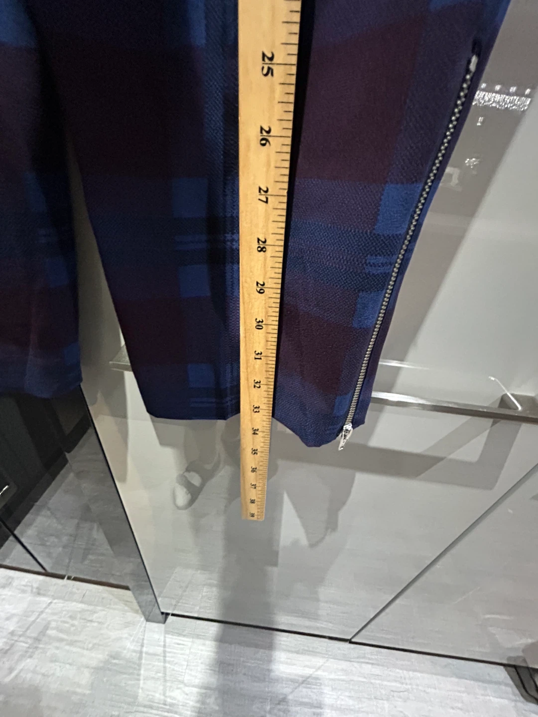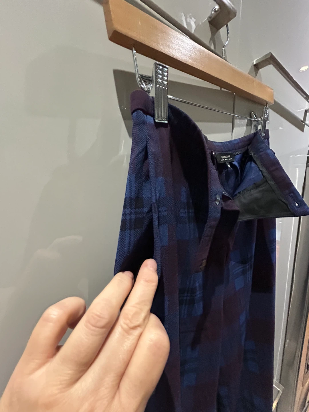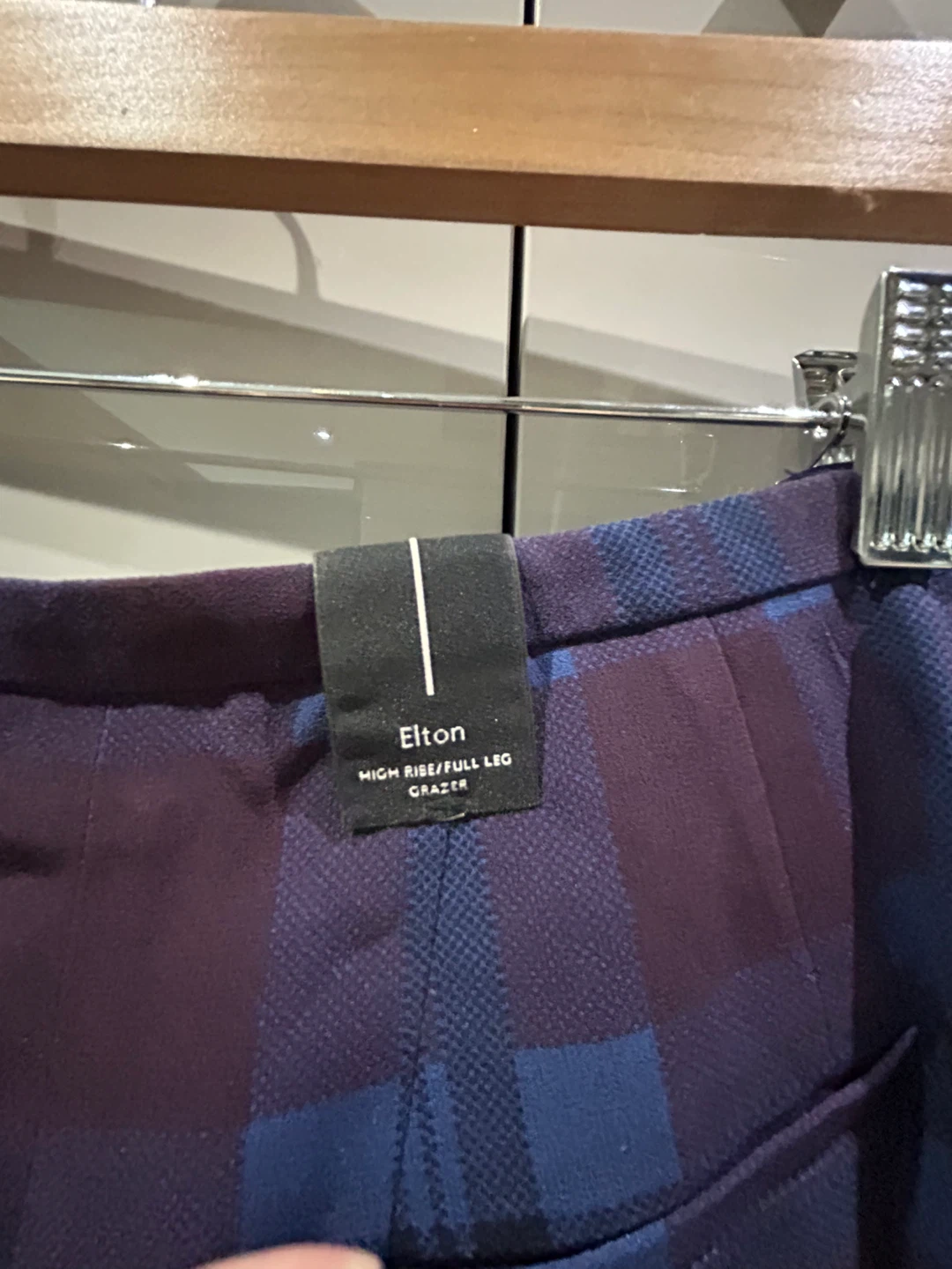 Babaton Elton trousers feature a classic plaid pattern in blue and burgundy.