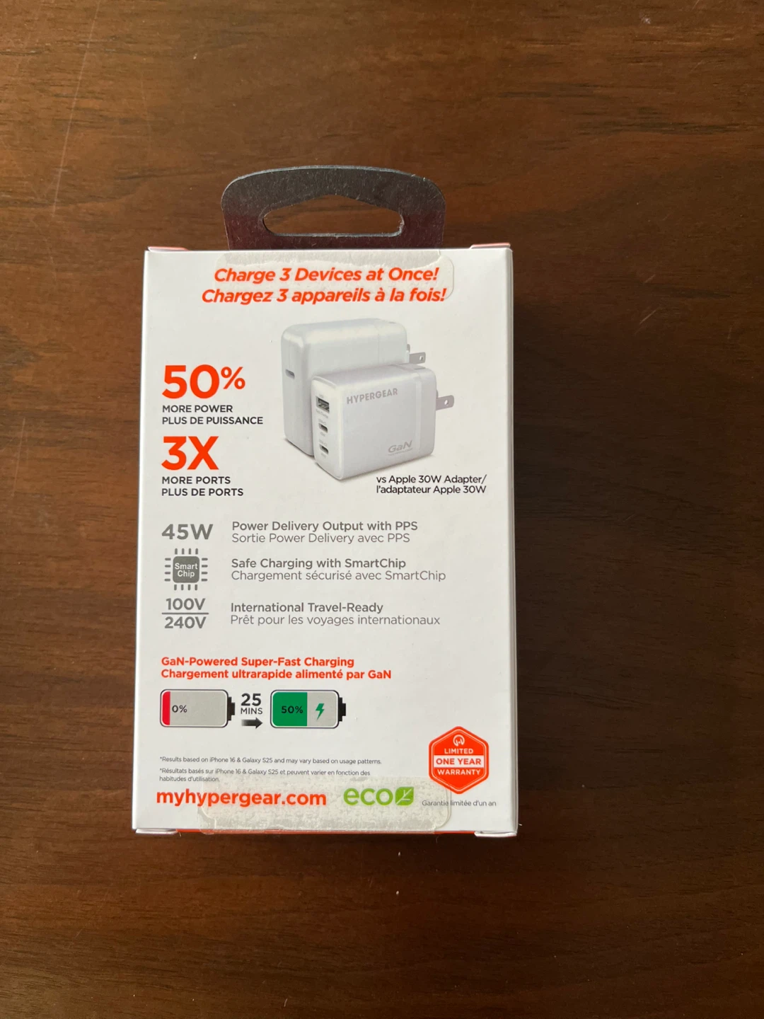 Charge 3 devices at once with this 45W GaN charger. It offers 50% more power and 3x faster charging. Includes 2x USB-C ports and 1x USB port. It's international travel-ready!