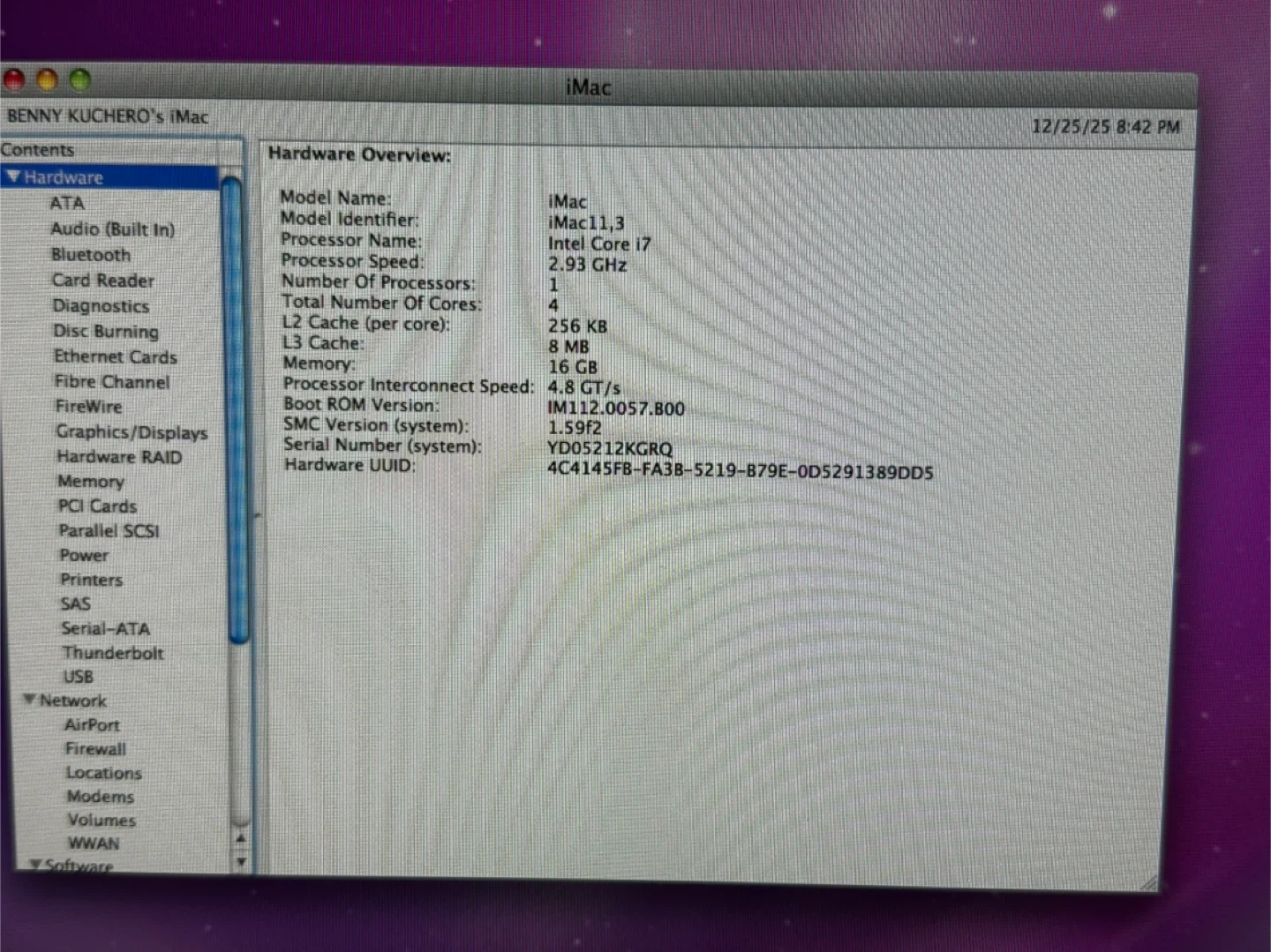 Selling my iMac from 2011! It has an Intel Core i7 processor and 16GB of memory. It's running Mac OS X.