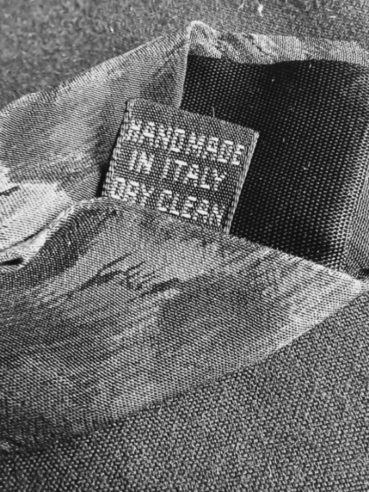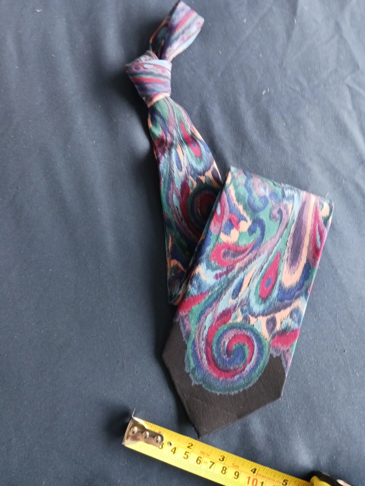 100% silk 4" wide tie. Made in Italy. Abstract paisley pattern in dark colours. Dry clean only.