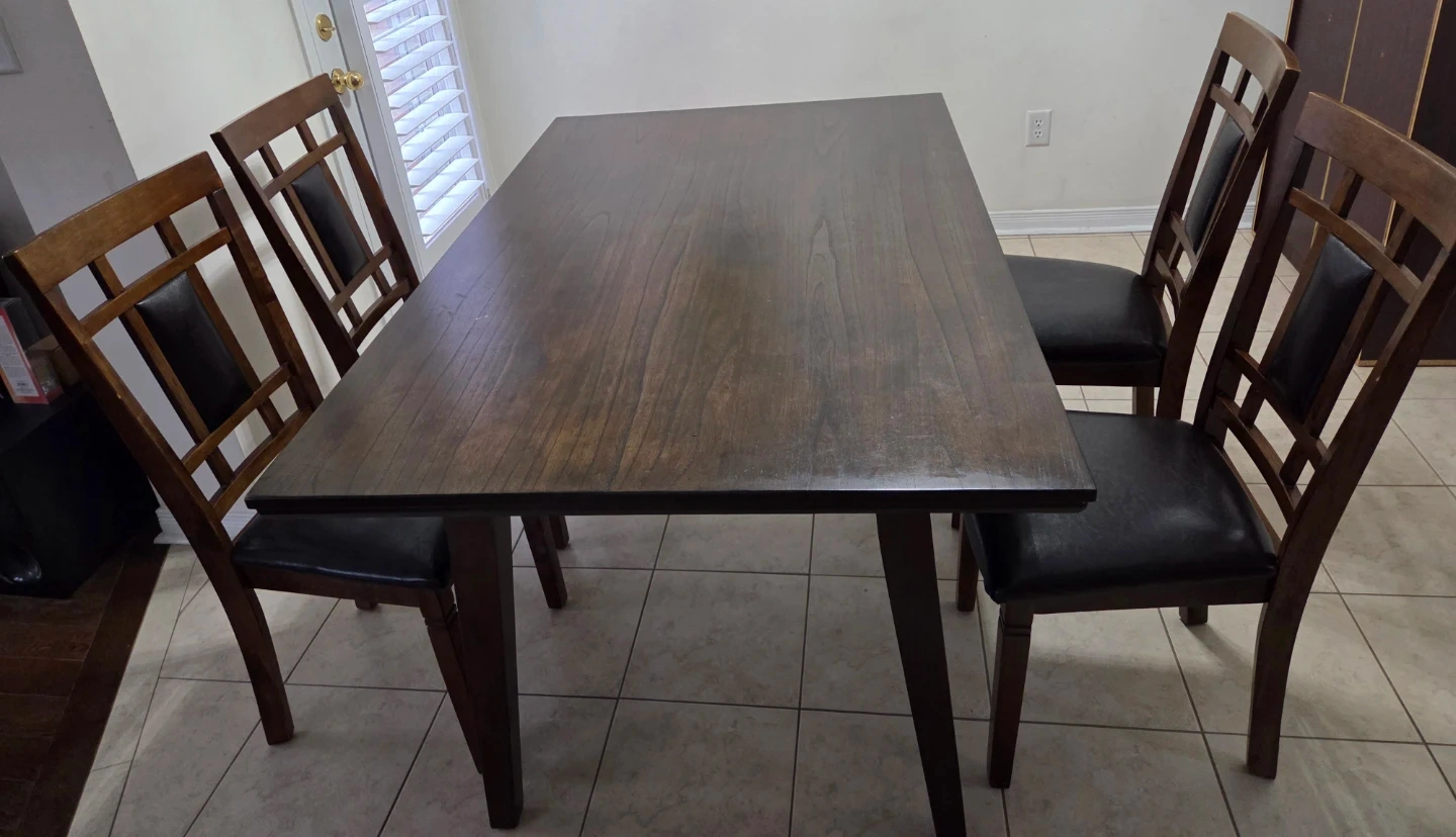 Wooden Dining Chairs with Black Upholstery (Set of 4)