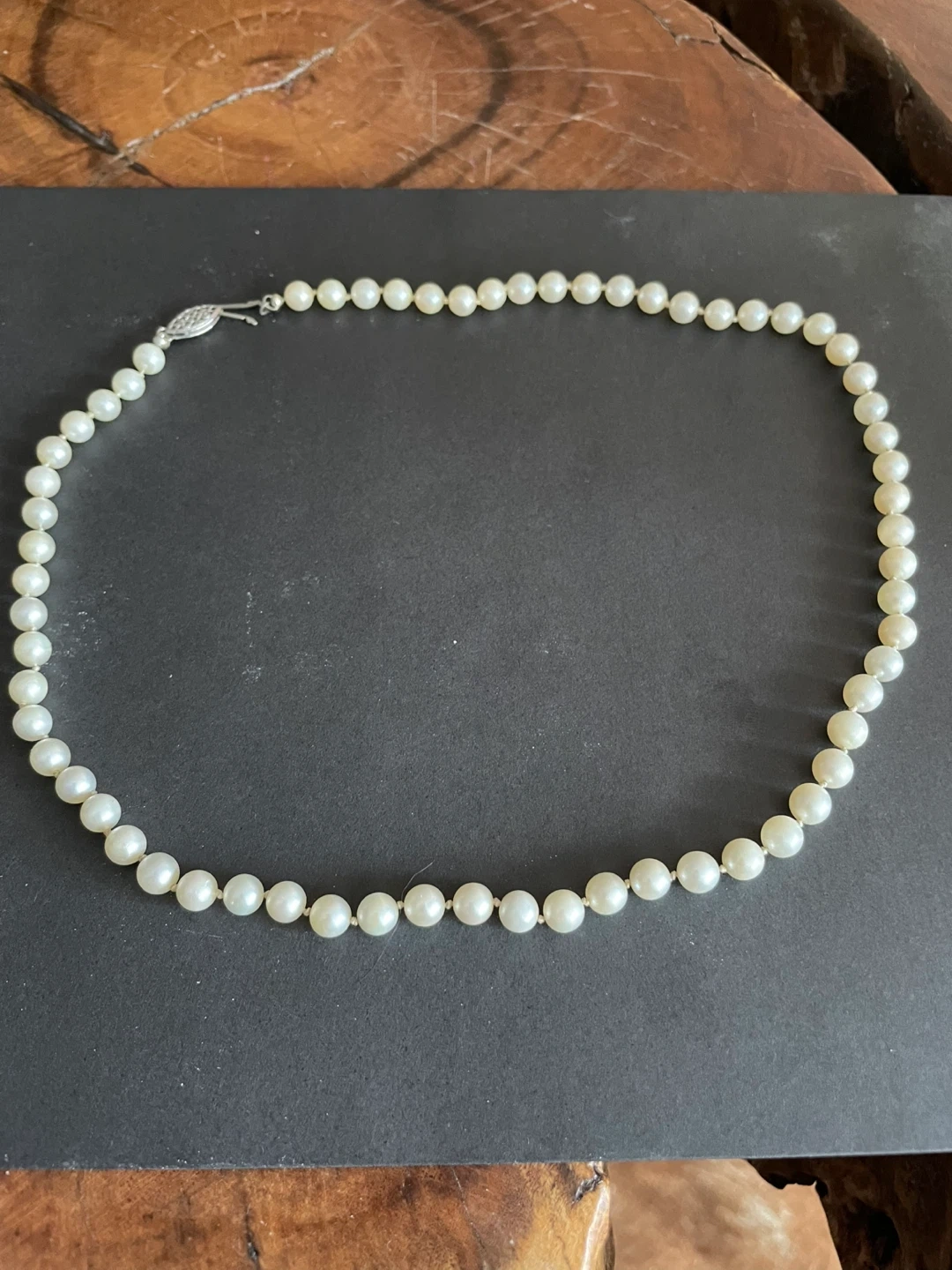 Measures approximately 17” knotted between the pearls.