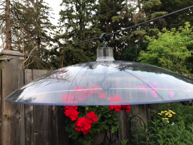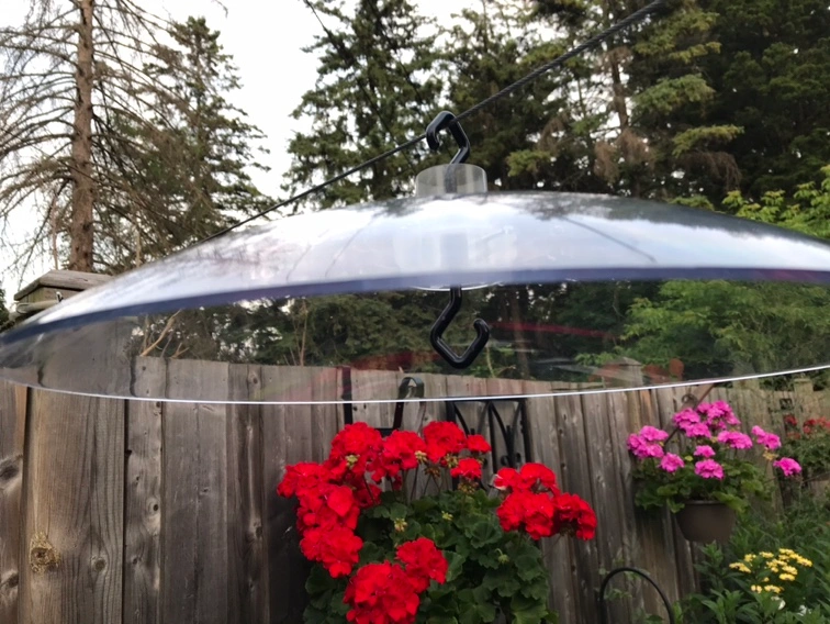 Thick, strong plastic shield for bird feeders. Protects from the rain and squirrels