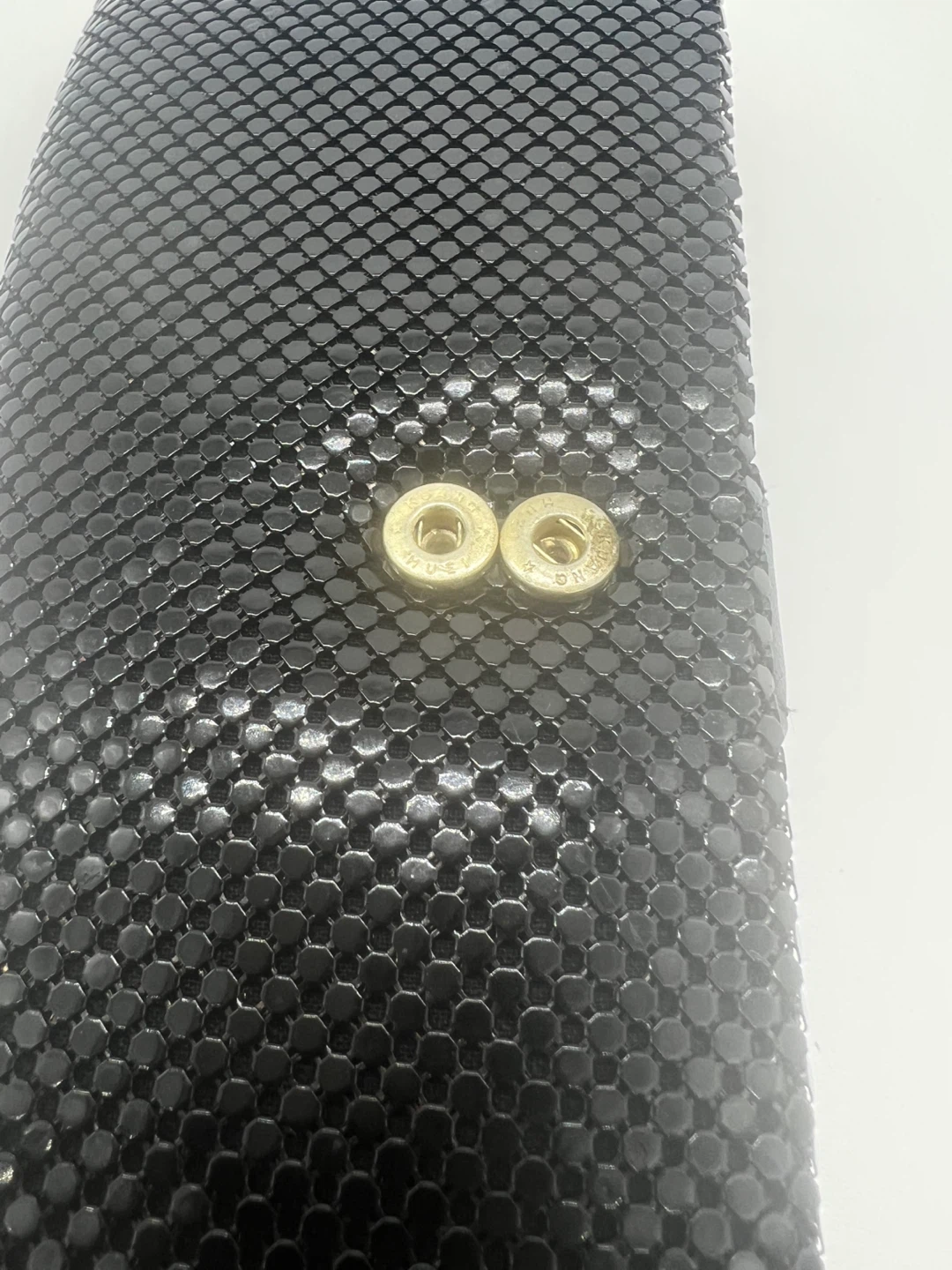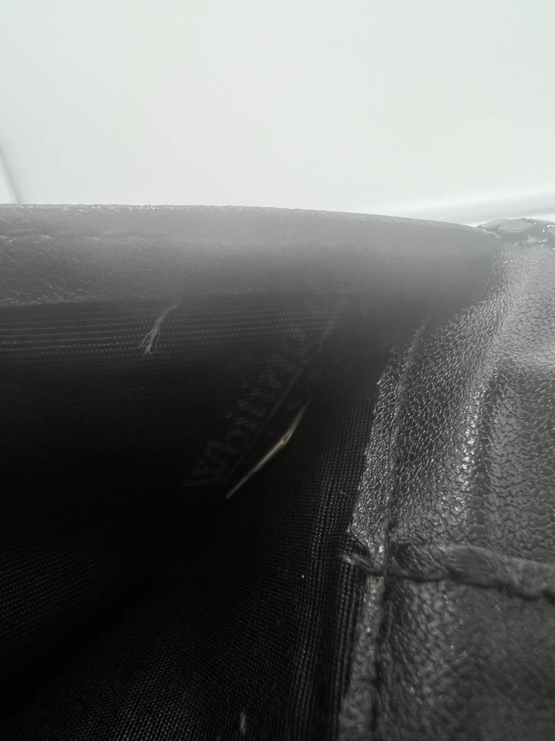 Faint wear on the metal mesh. Faint wear on the leather trim.