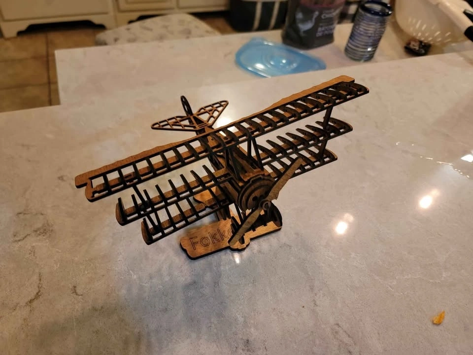 Laser Cut Wooden Fokker DR.1 Triplane Model