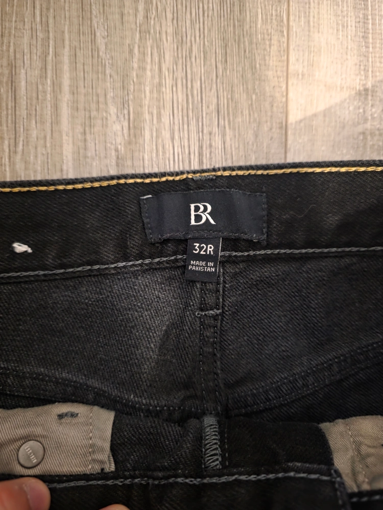 Selling a pair of Banana Republic jeans in black, size 32R x 30. They're in great shape and ready for a new home! The material is base fabric 100% cotton, coating. bought for about 200