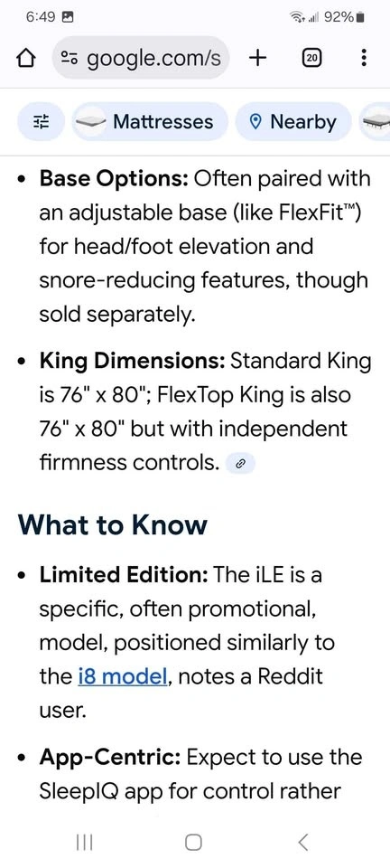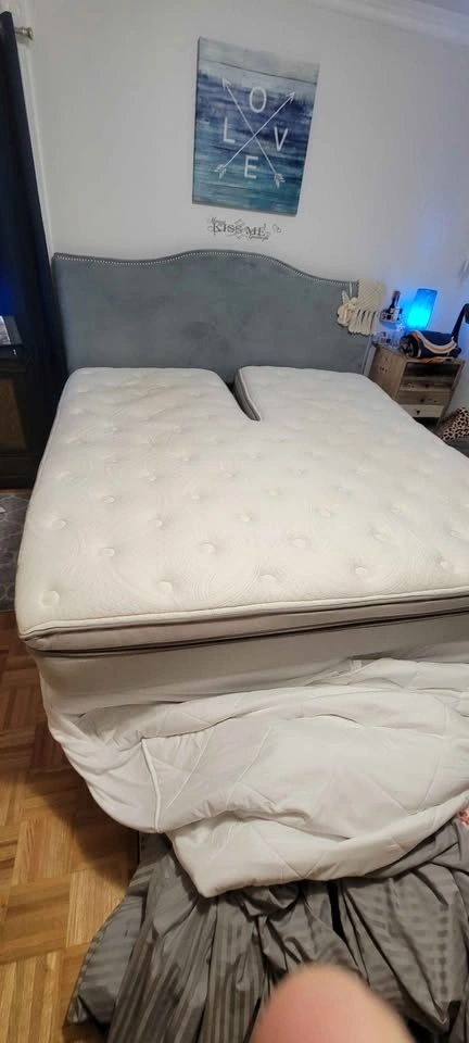 Sleep Number flex top king size iLE model bed with fully adjustable frame. Includes remote control and app control. Also includes solid wood bedroom furniture in excellent condition. All available king size bedding is included: pillows, sheets, blanket, and mattress protector.