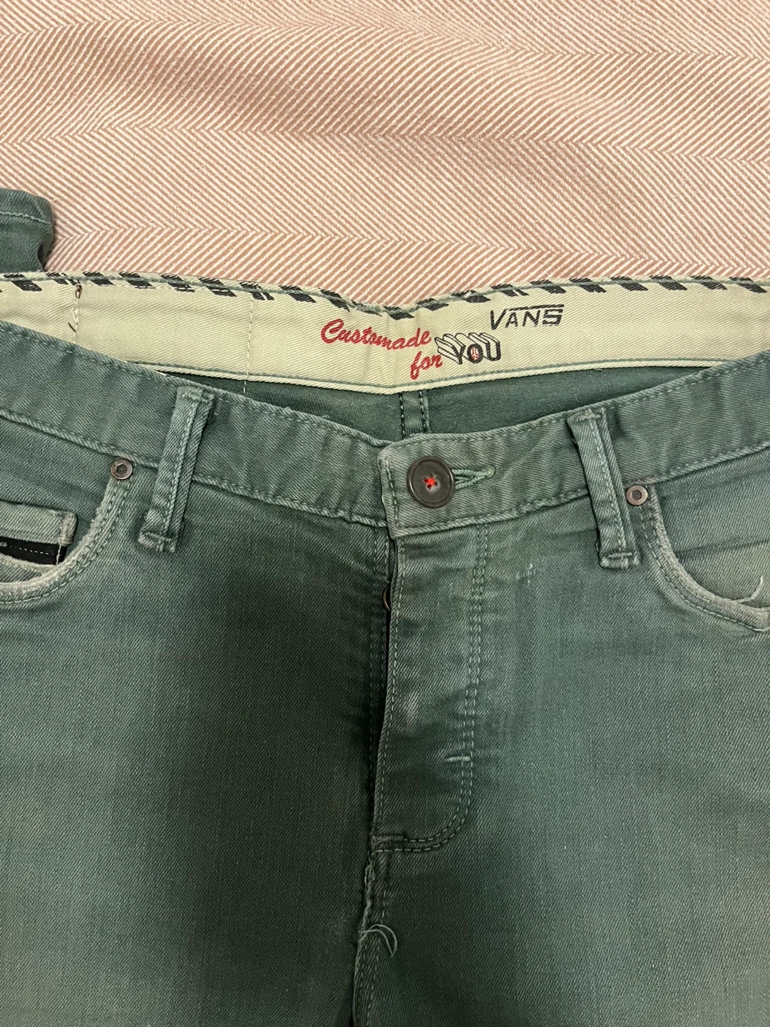 These Vans pants are a cool green colour and feature the 'Customade for You' detail on the waistband. They're a stylish addition to any casual wardrobe.