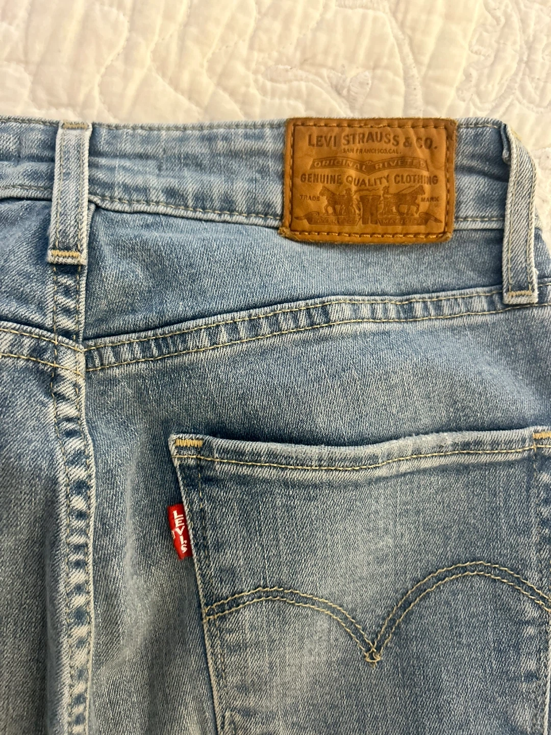 Levi's 721 High Rise Skinny Jeans in a light wash denim. These jeans are in good condition and feature a classic five-pocket design and a flattering skinny fit. Perfect for everyday wear!
