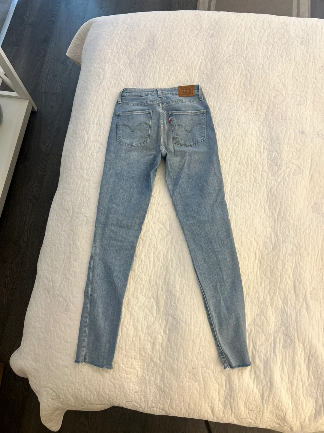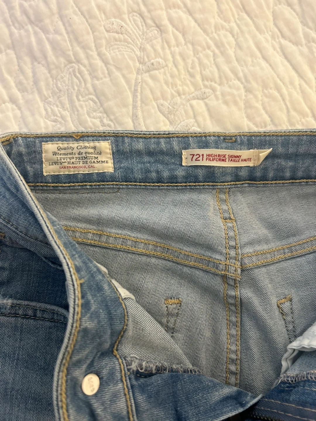 Levi's 721 High Rise Skinny Jeans in a light wash denim. These jeans are in good condition and feature a classic five-pocket design and a flattering skinny fit. Perfect for everyday wear!