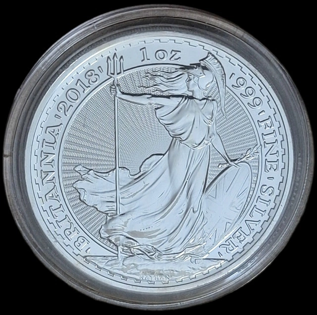 Offering 2018 British Britannia silver bullion coins.