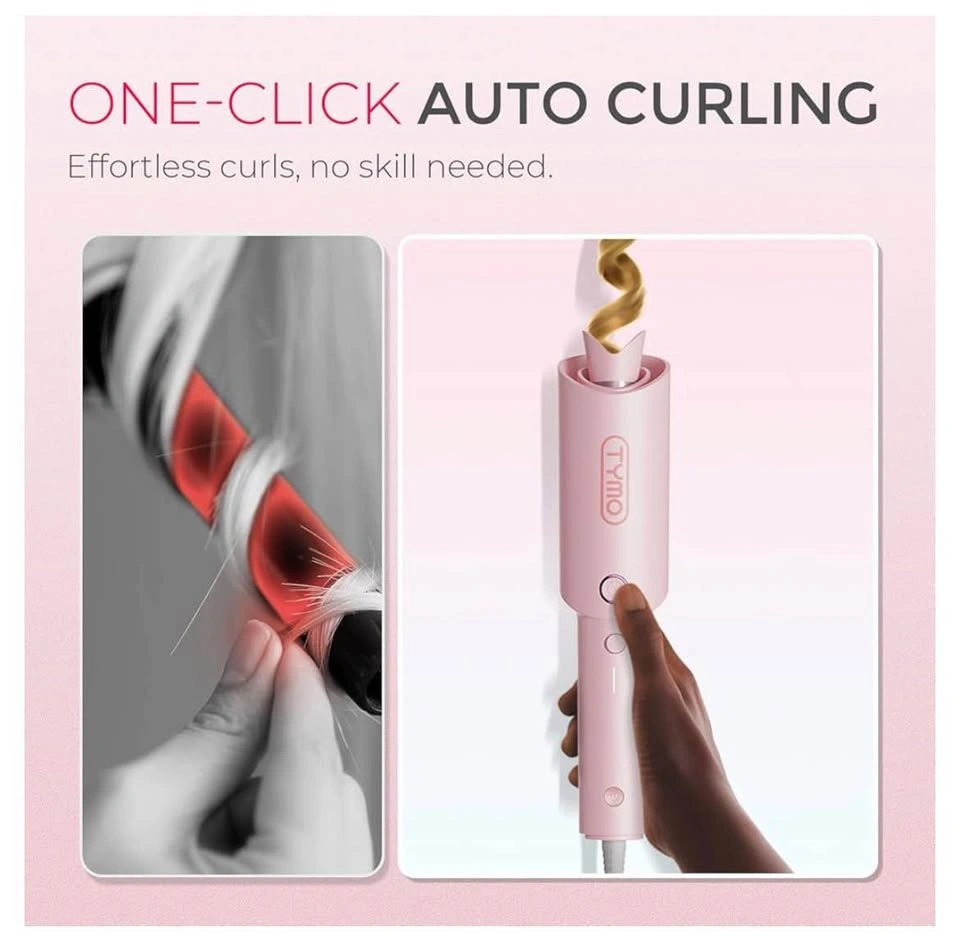 QUICK EASY CURLS FOR BEGINNERS - TYMO CURLPRO 1-inch automatic rotating curling iron features one-click auto-rotation, taking the hassle out of styling and creating consistent beach waves every time. In just 10 minutes, you're ready to go with fabulous curls.