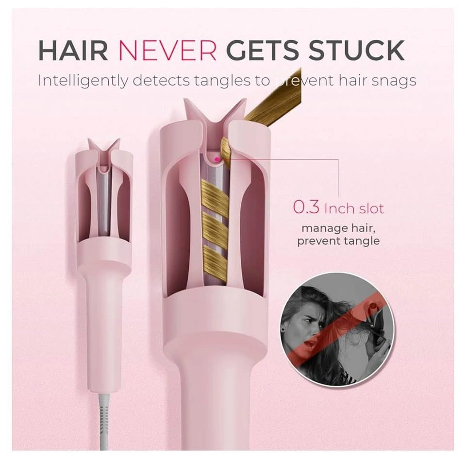 NO BURNING RISKS, NO TANGLES - Designed with a cool-to-the-touch 360° anti-scald design, the automatic rotating hair curler is safe for both kids and adults. Its intelligent anti-tangle mechanism detects and promptly reverses tangles, ensuring a smooth styling experience.