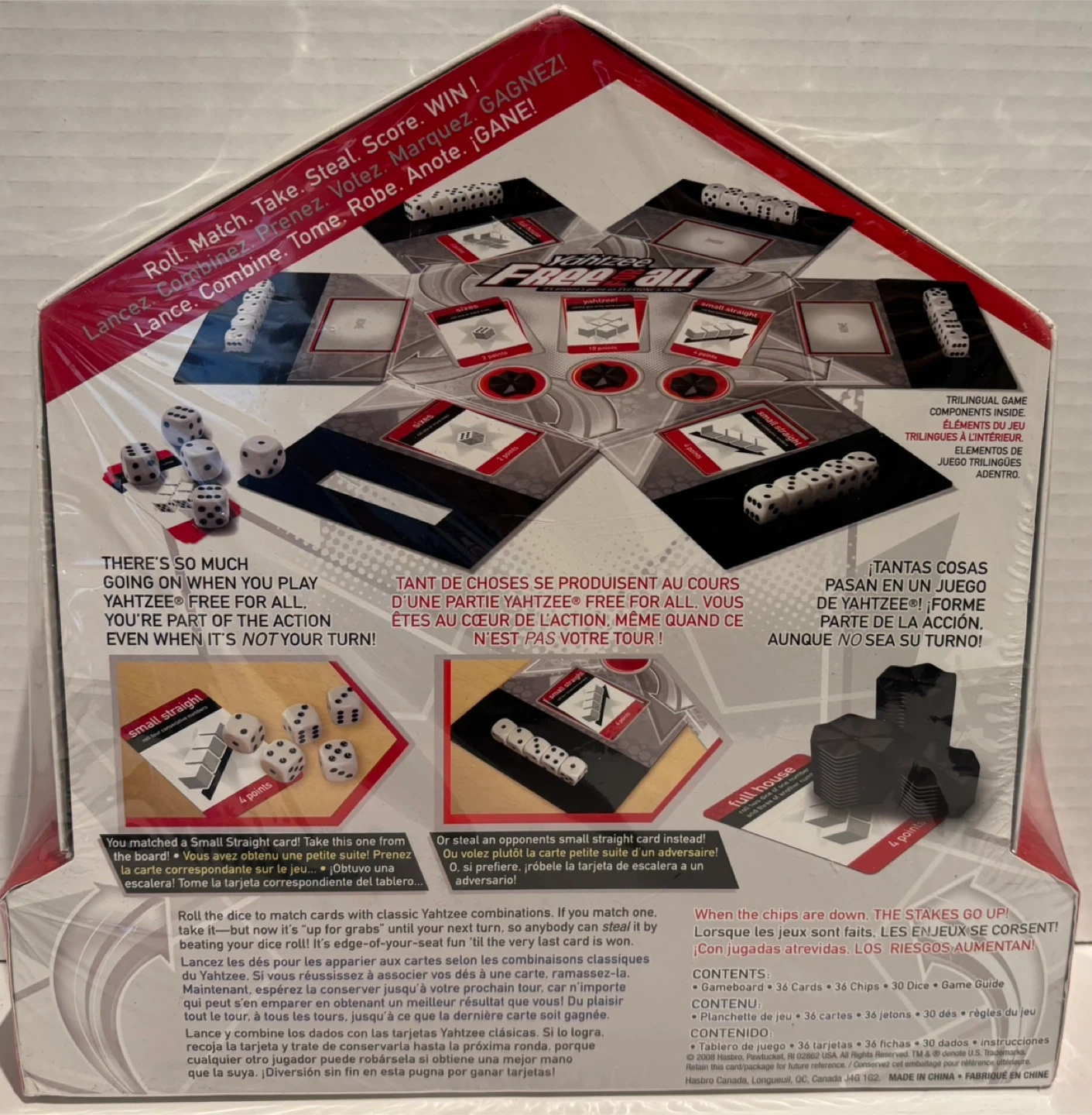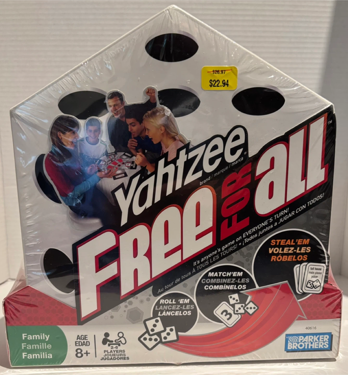 Selling a Yahtzee Free For All game by Parker Brothers! It's a fun game for 2-4 players, ages 8 and up. The game includes 36 cards, 36 chips, 30 dice, and a game guide. Get ready to roll, match, and steal your way to victory!